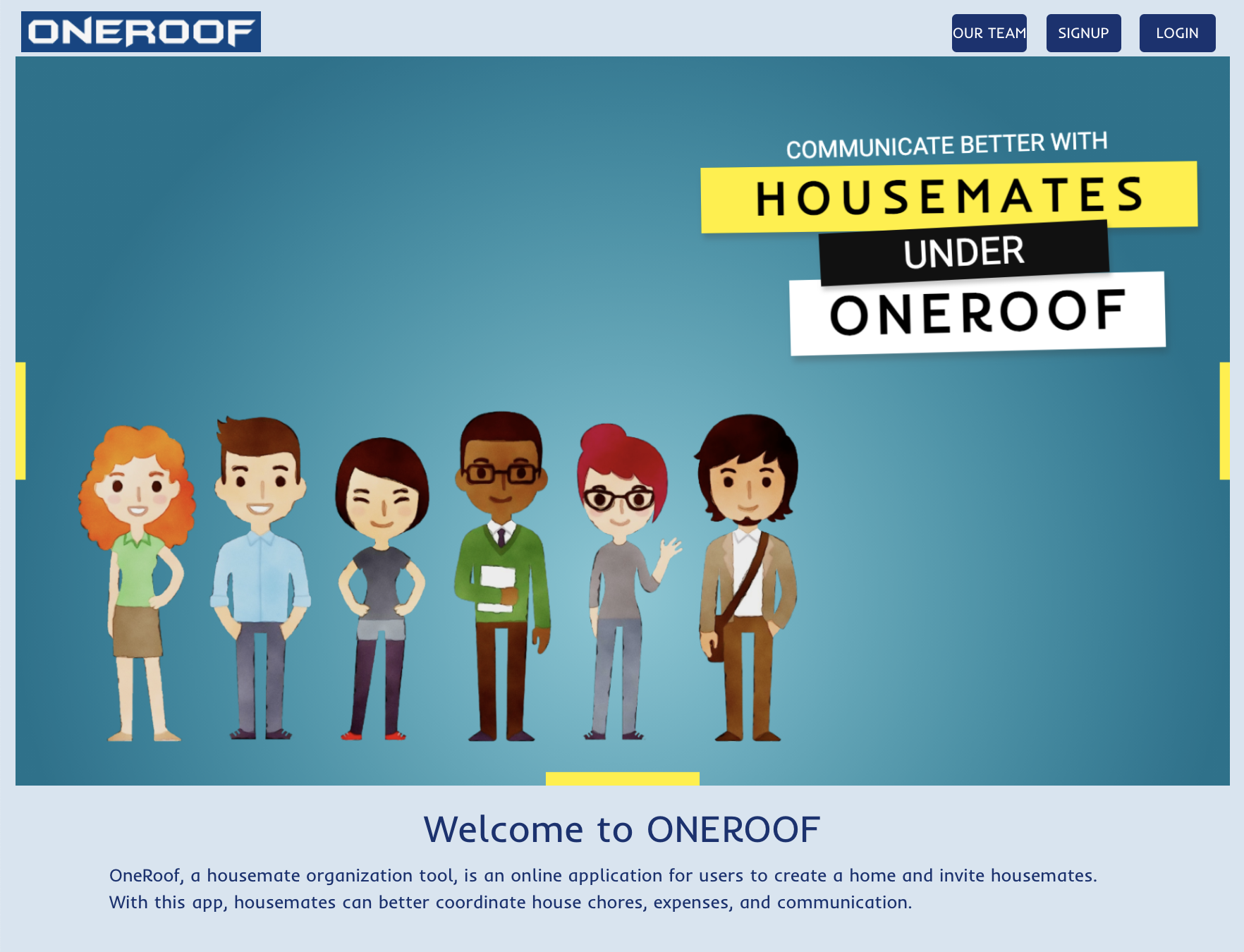 OneRoof, a housemate organization tool, is an online application for users to better coordinate house chores, expenses, meetings, and communication through live chat. This app will make living arrangement coordination and communication much easier for households.
